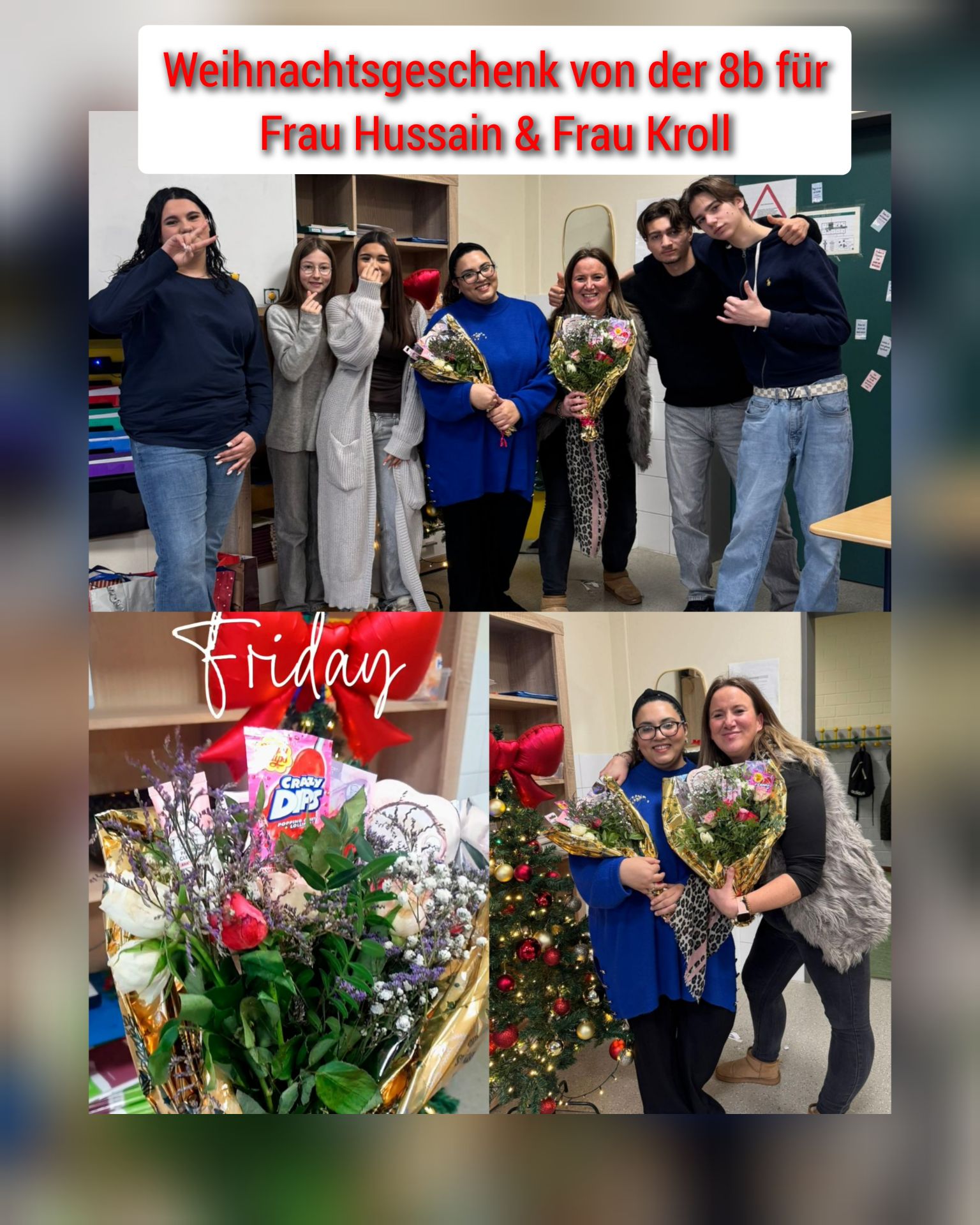 Ein ganz herzliches Dankeschön geht an die Klasse 8b für das wunderschöne Geschenk für Frau Kroll und Frau Hussain.