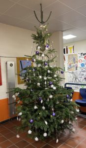 Frau Odenius dekorierte mit Ihren Schülerinnen und Schülern mit viel Liebe den Weihnachtsbaum in unserem Foyer.